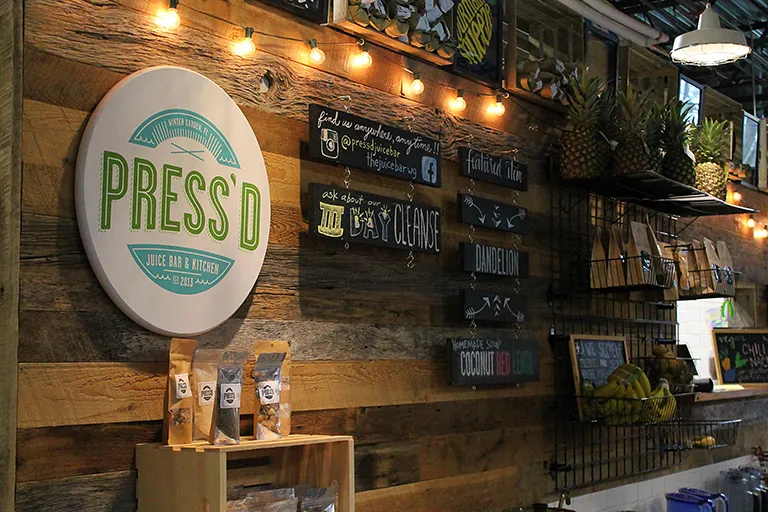 Press'd is a family owned vegan/vegetarian grab-and-go juice bar offering cold pressed and custom juices, smoothies, wraps, daily fresh soups, salads, raw chocolates and desserts.